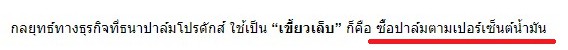 เราโทรไปถามโรงงานน้ำมันปาล์มอีกจังหวัด เค้าก็ยืนยันนะว่าถ้าเป็นปาล์มคุณภาพสูง