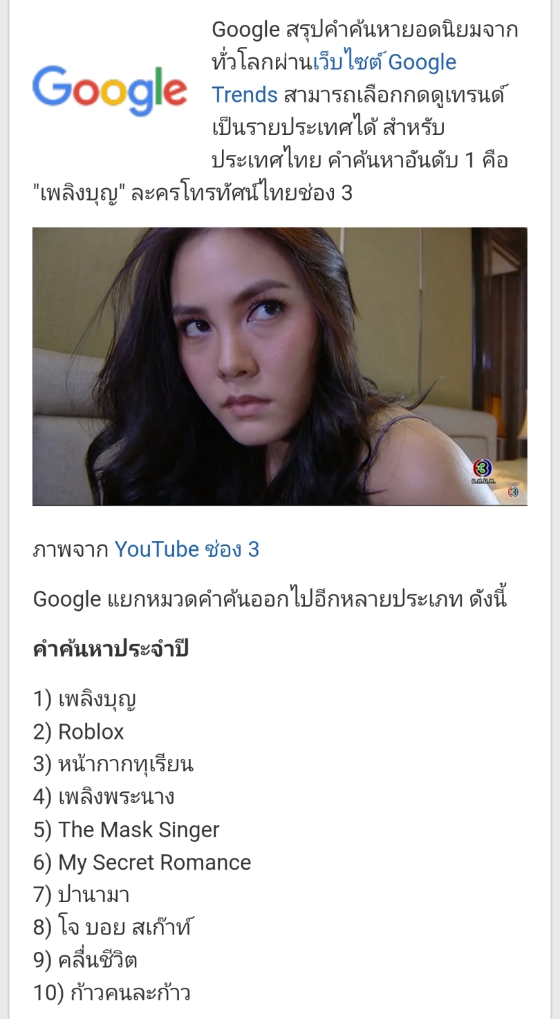 Google เผยคำค้นหายอดนิยมประจำปี 2024 📌 “ธี่หยด2” ขึ้นแท่น "ภาพยนตร์" อันดับ 1 🎉 TOP10 คำค้นหายอดนิยม
