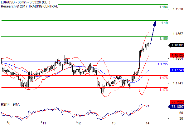 ความเห็นในเชิงเทคนิค: การทะลุผ่านเหนือระดับ 1.1795 ขึ้นไปเป็นสัญญาณบวกที่เปิดโอกาสให้ไปอยู่ที่ 1.1860 ได้