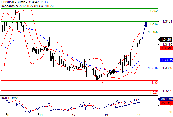 จุดที่ต้องการ: สถานะซื้อสูงกว่า 1.3345 เป้าหมายต่อไปที่ 1.3455 และ 1.3480