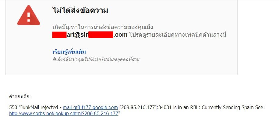 ส่ง Email แล้ว โดนตีกลับ ส่งไม่ได้ครับ