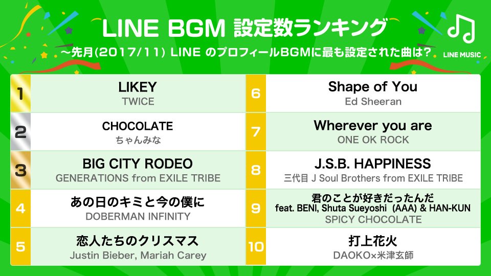 TWICE <LIKEY> มียอดใช้เป็นเพลงประดับหน้าโปรไฟล์สำหรับแอพพลิเคชั่น LINE (LINE BGM) อันดับ 1 สองเดือนติดต่อกัน