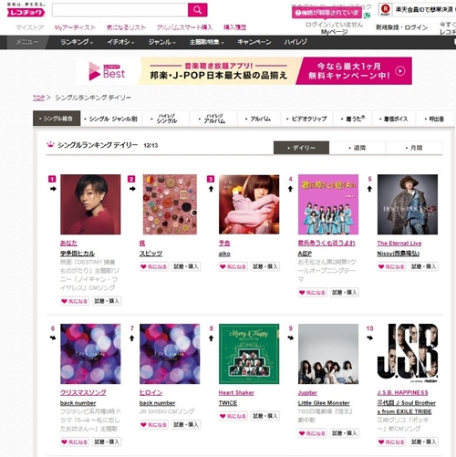 ชาร์ต Recochoku ญี่ปุ่น (13.12)