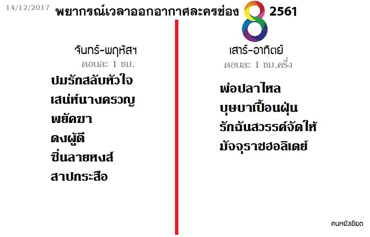 มาพยากรณ์วันเวลาออกอากาศละครใหม่ "ช่อง 8" ปี 2561 กัน