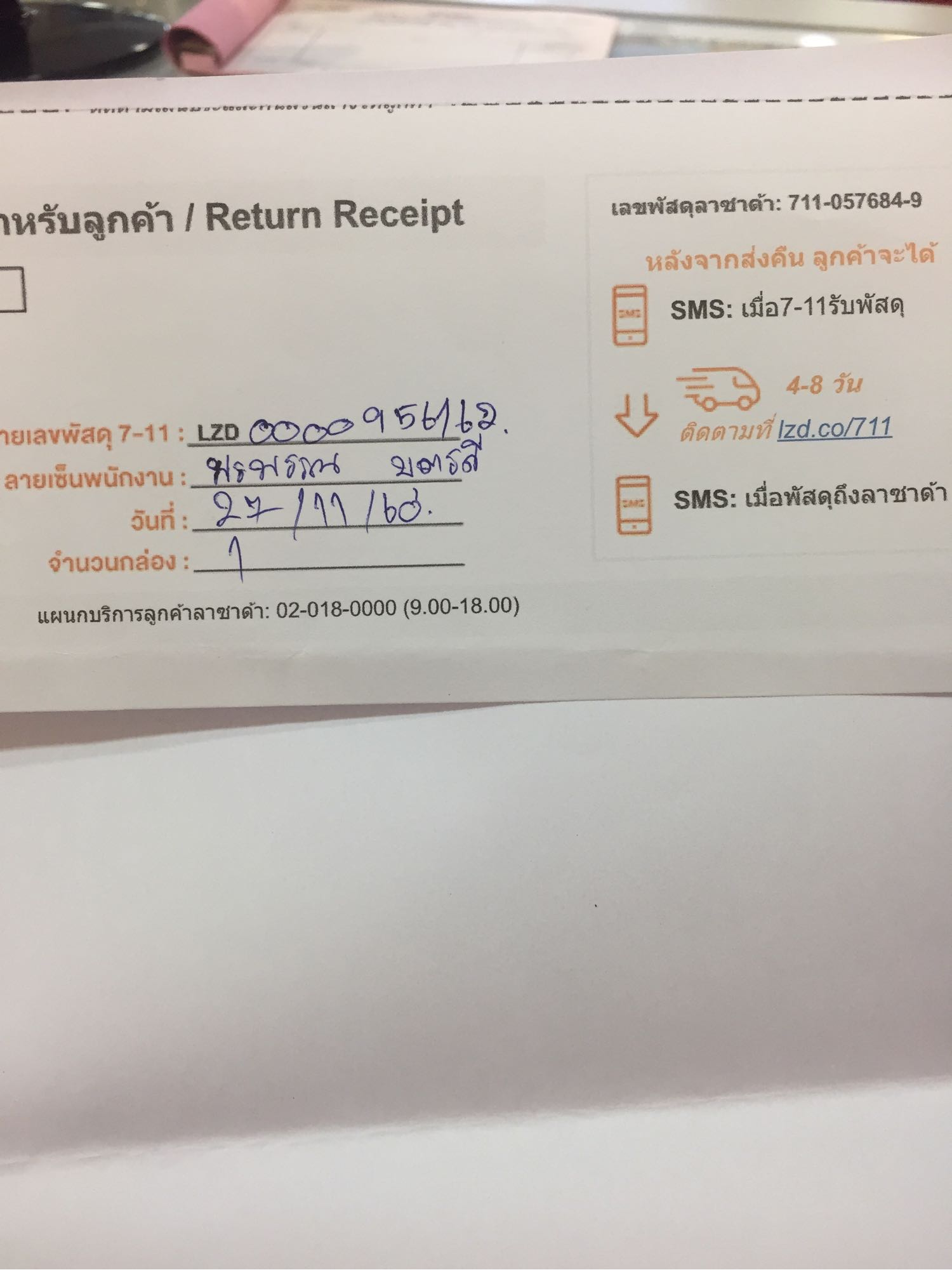 ส่งสินค้าคืนลาซาด้า ผ่านทาง 7-11 ใช้เวลานานมากเลยหรอคะของเราจะเดือนนึงแล้ว ส่งจากลพบุรี สินค้ายังเดินทางไม่ถึงคลังลาซาด้าเลย พนง ของลาซาด้าแนะนำให้ส่งผ่านทาง 7-11 ถ้ารู้ว่านานขนาดนี้คงเลือกส่งผ่านไปรษณีย์ไปแล้ว