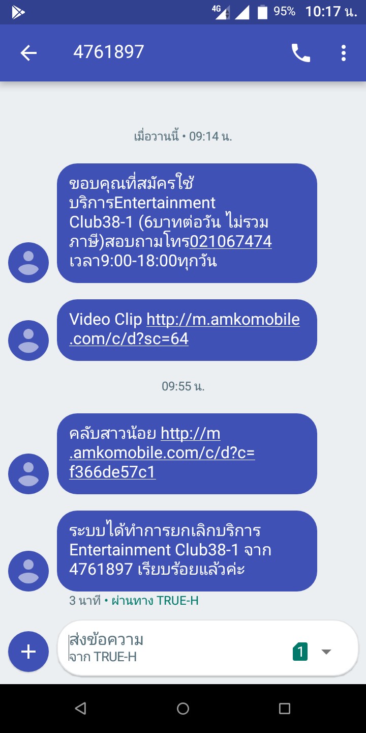 อัพเดต : เช้านี้มีข้อความยกเลิกมาแล้ว ขอบคุณ TRUE ที่ช่วยดำเนิน การยกเลิก และ ตัดค่าเรียกเก็บเงินข้อความ ให้ครับ -----------------------------------------------