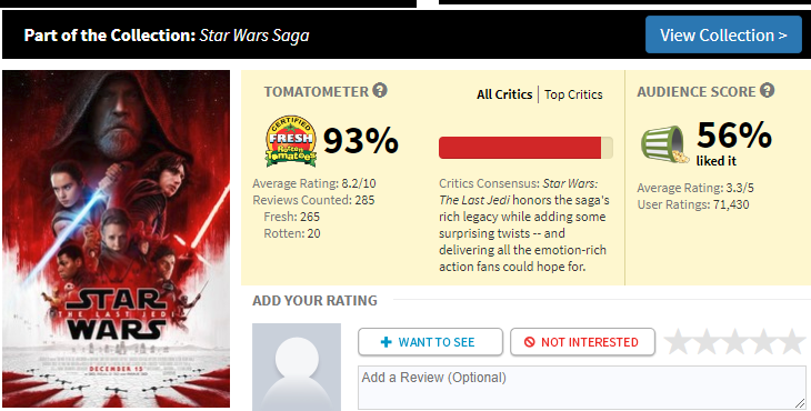 Star war หนังที่ user กับนักวิจารณ์เห็นต่างกันแบบสุดๆ สรุปดีหรือไม่ดีครับ ?