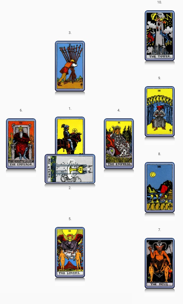 รบกวนช่วยอ่านไพ่แบบ 10 ใบให้หน่อยค่ะ เกี่ยวกับเรื่องความรัก
