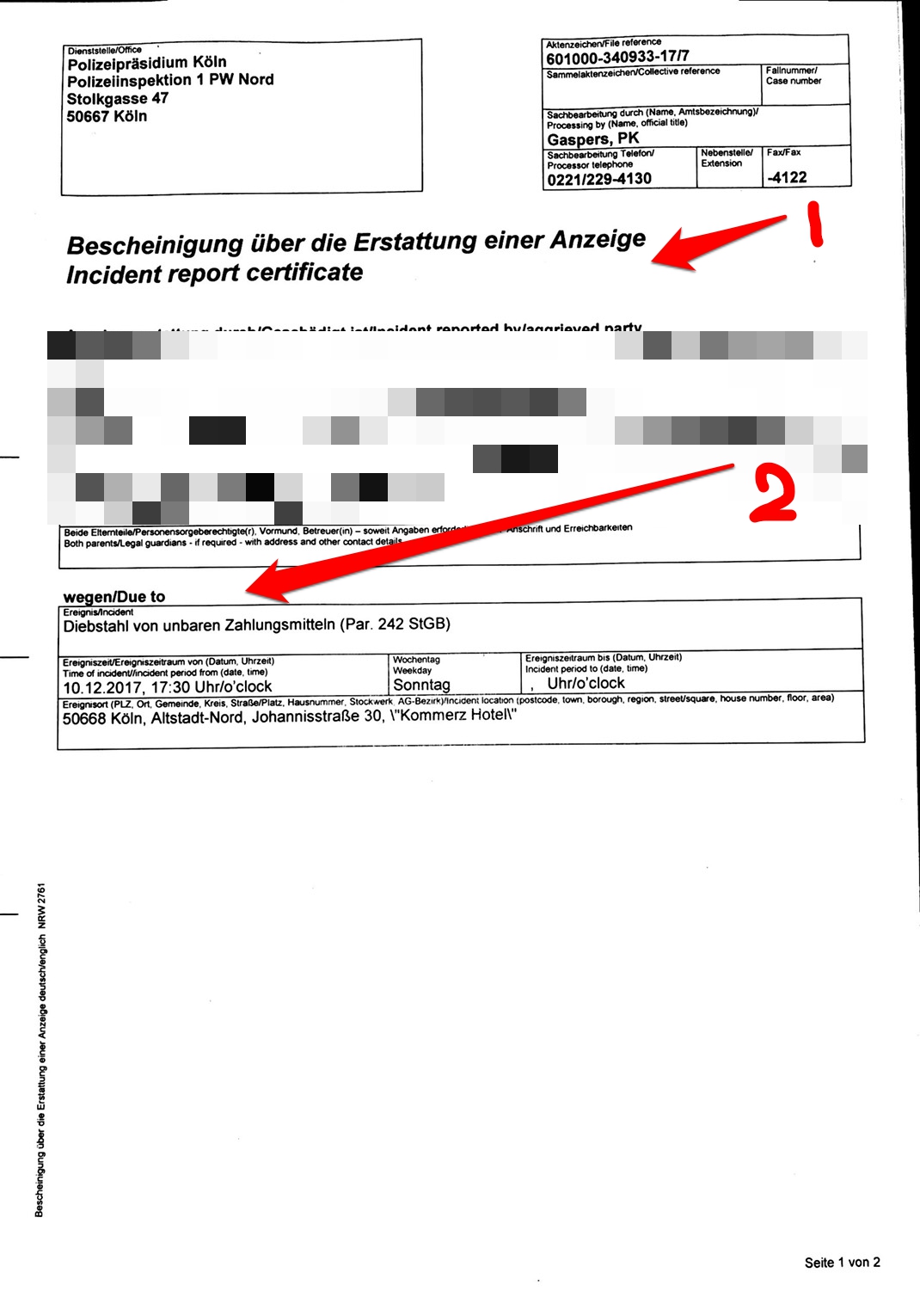 มีตำรวจมาที่เกิดเหตุ แล้วไปให้การที่สถานีโรงพักที่โคโลนน์อีกครั้ง