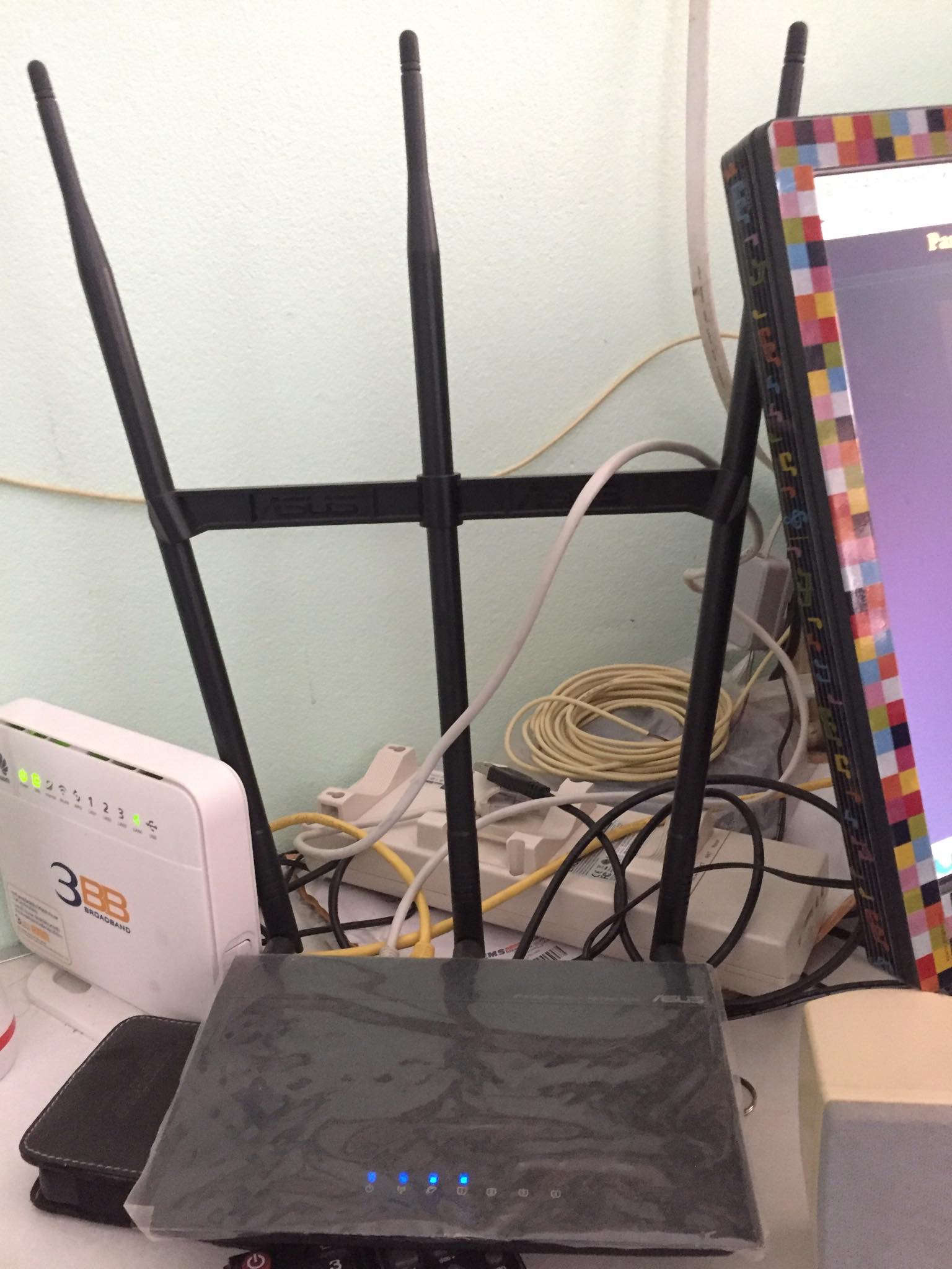 ตอนนี้ผมใช้อินเตอร์เน็ต Adsl 3 bb อยู่ครับซึ่งทางบริษัทได้ให้เราเตอร์โดยมีเงินประกัน 1,500 บาท ซึ่งผมกะว่าจะเปลี่ยนโดยนำเราเตอร์ 3 bb ไปคืนแล้วรับเงินประกันกลับ ทีนี้ผมก็ไปซื้อ router มาของ ASUS รุ่น RT - N14UHP แต่ผมไม่ได้ดูว่าตัวนี้ไม่มีที่เสียบสายโทรศัพท์ด้านหลังมีแต่พอร์ตแลน ผมเลยต้องใช้เราเตอร์ของ 3 bb มาตั้ง bridge mode แล้วใช้ ASUS มาปล่อยไวไฟแทนครับ