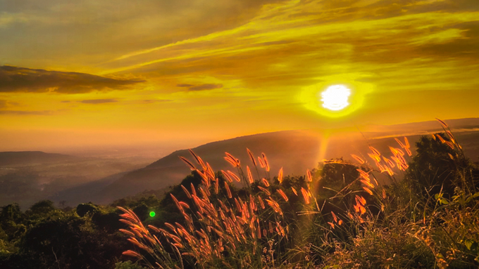 ยิ่งช่วงเย็นถึงค่ำ แสงตะวันสาดผ่านกลางท้องฟ้า จนลับเหลี่ยมแนวเขา บอกเลยว่า สวยทุกองศา ใครที่ชอบถ่ายรูปไม่ควรพลาด ยิ่งได้แนวดอกหญ้าเป็นโฟกราว แสงตะวันยามอัสดงวิบวับ หวานฉ่ำไปเลย !!
