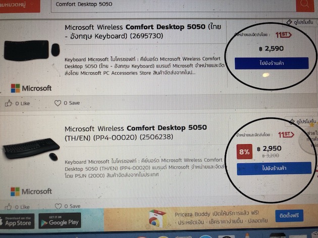 Microsoft Desktop 5050 ใน ราคา 2990 OK ก็เริ่มเทียบกับ หลายๆที่ หลายๆเจ้าใน LAZADA ก็ราคาถูกว่า สองสามร้อย ก็มี ก็เลือกๆ เลือกไปเลือกมา ก็มาสังเกตุว่า ตัวที่เลือกบางตัวมี THA-ENG บางตัวที่ถูกกว่า ไม่ใส่ไว้ THA-ENG โอเคเข้าใจละ ว่าอันนี้มีแป้นไทย ก็ไปดูหลายๆเว็บ ตัวนี้ไม่ได้ถูกสุด แต่มันเข้ากับ SHOPBACK ได้เลย จัดการไป