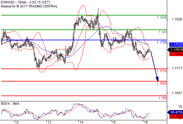 ความเห็นในเชิงเทคนิค: หากแนวต้านที่ 1.1785 ยังไม่เลยขึ้นไป ความเสี่ยงที่จะทะลุต่ำกว่า 1.1715 ยังคงสูงอยู่