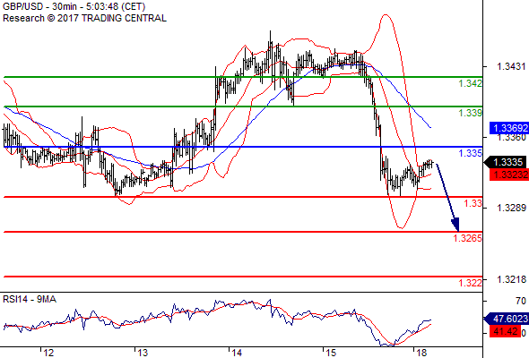 จุดที่ต้องการ: สถานะขายต่ำกว่า 1.3350 เป้าหมายต่อไปที่ 1.3300 และ 1.3265