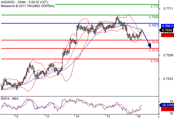 AUD/USD การซื้อขายระหว่างวัน: แนวต้านระยะสั้นสำคัญที่ 0.7675