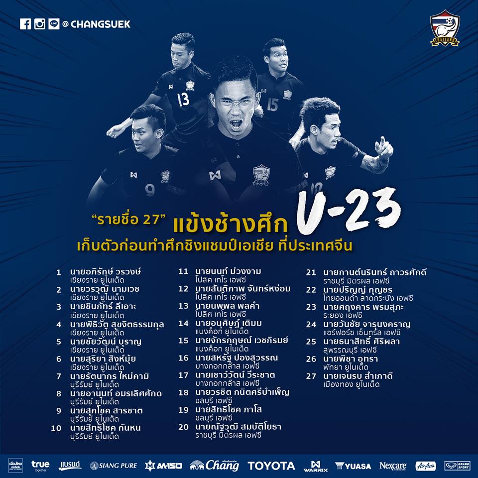 รายชื่อนักเตะทั้ง 27 คนมีดังนี้