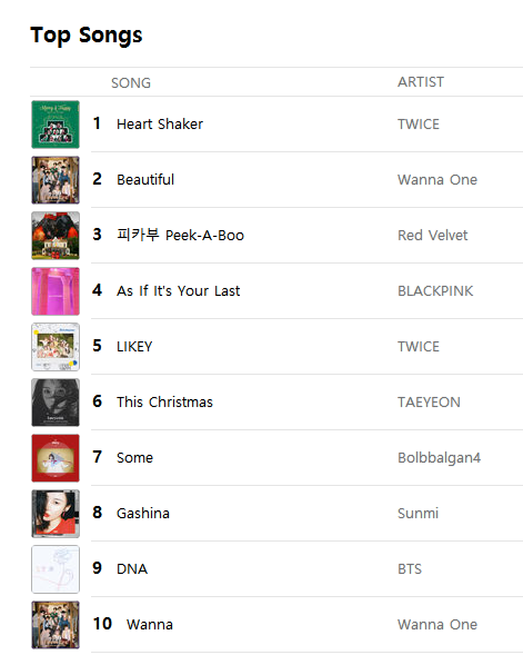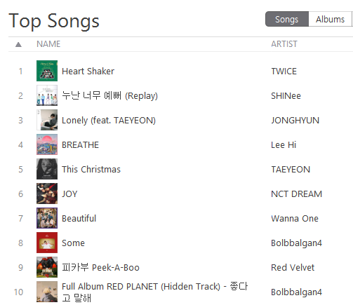 [K-POP] รายงานชาร์ต Top 10 K-POP Songs Apple Music & iTunes Store Thailand (18-Dec-17)