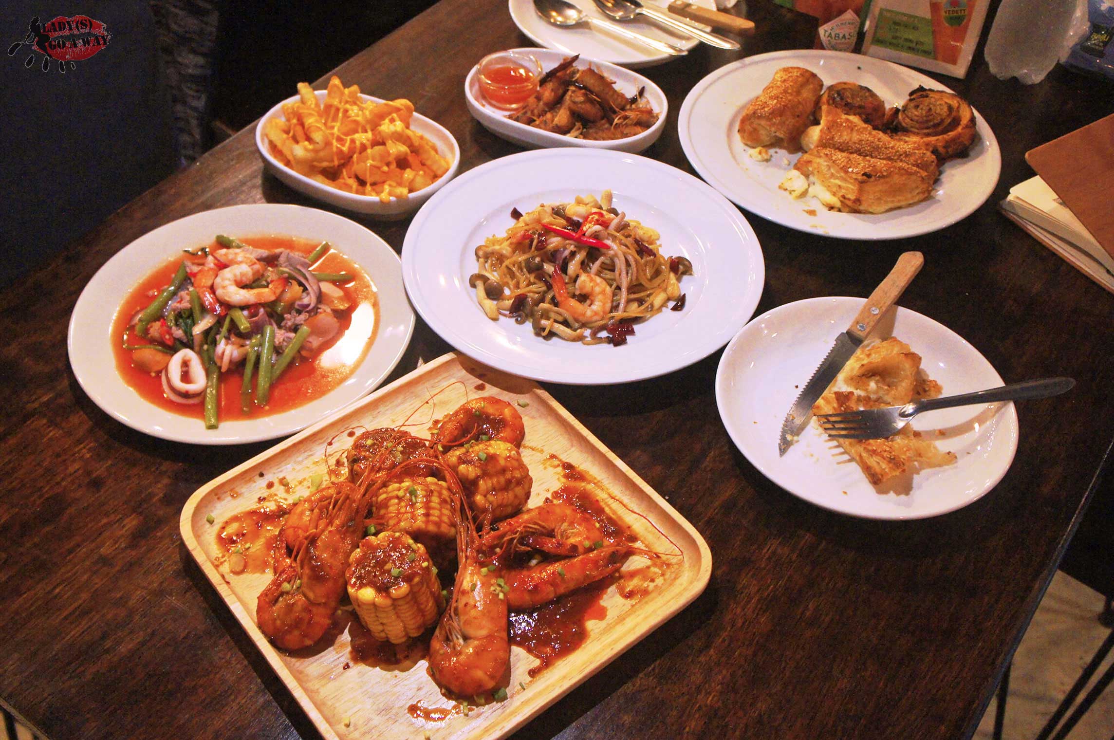 คุณเดวิดเพื่อนของพี่ที่เรารู้จักก็เลยมานั่งคุยและแนะนำเมนูให้ด้วย สักพักพี่ผู้หญิงอีกคนที่เป็นคนดูแลหลักของร้านก็มานั่งคุยด้วยกันอีก 55555 พี่เขาแนะนำเมนูเด็ดของร้านเป็นเมนูยำเย็นตาโฟทะเล กุ้งถัง สปาเก็ตตี้พริกแห้งทะเล ปีกไก่ทอดสมุนไพร และเฟรนด์ฟรายชีสสสสสสสส~ คือ หิวชะมะ ??? สั่งขนาดนี้ !!! และตาดันดีไปเจอเมนูเพรสตี้ (Pastry) คือไม่เคยได้ยินจะบอกบ้านนนอกก็ได้นะคะ 555 ก็เลยถามพี่เขาว่ามันคืออะไร ?