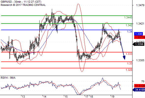 จุดที่ต้องการ: สถานะขายต่ำกว่า 1.3400 เป้าหมายต่อไปที่ 1.3330 และ 1.3300