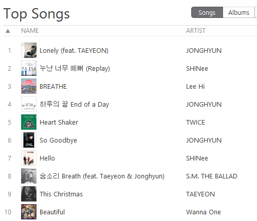 [K-POP] รายงานชาร์ต Top 10 K-POP Songs Apple Music & iTunes Store Thailand (19-Dec-17)