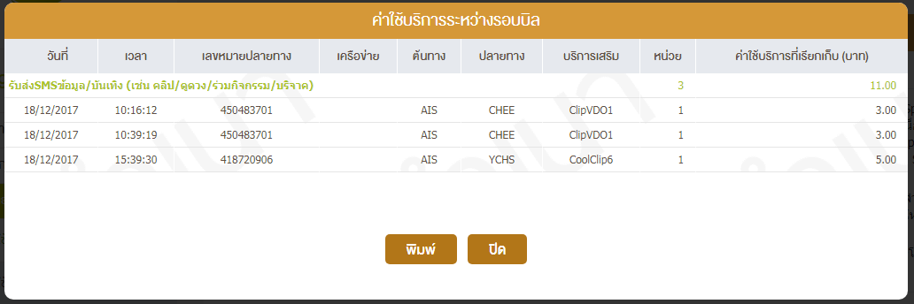ปรากฏว่า รอบบิล 12/11/2560 - 11/12/2560 ของเรามีค่าบริการงอกมา 64.20 บาท ค่ะ
