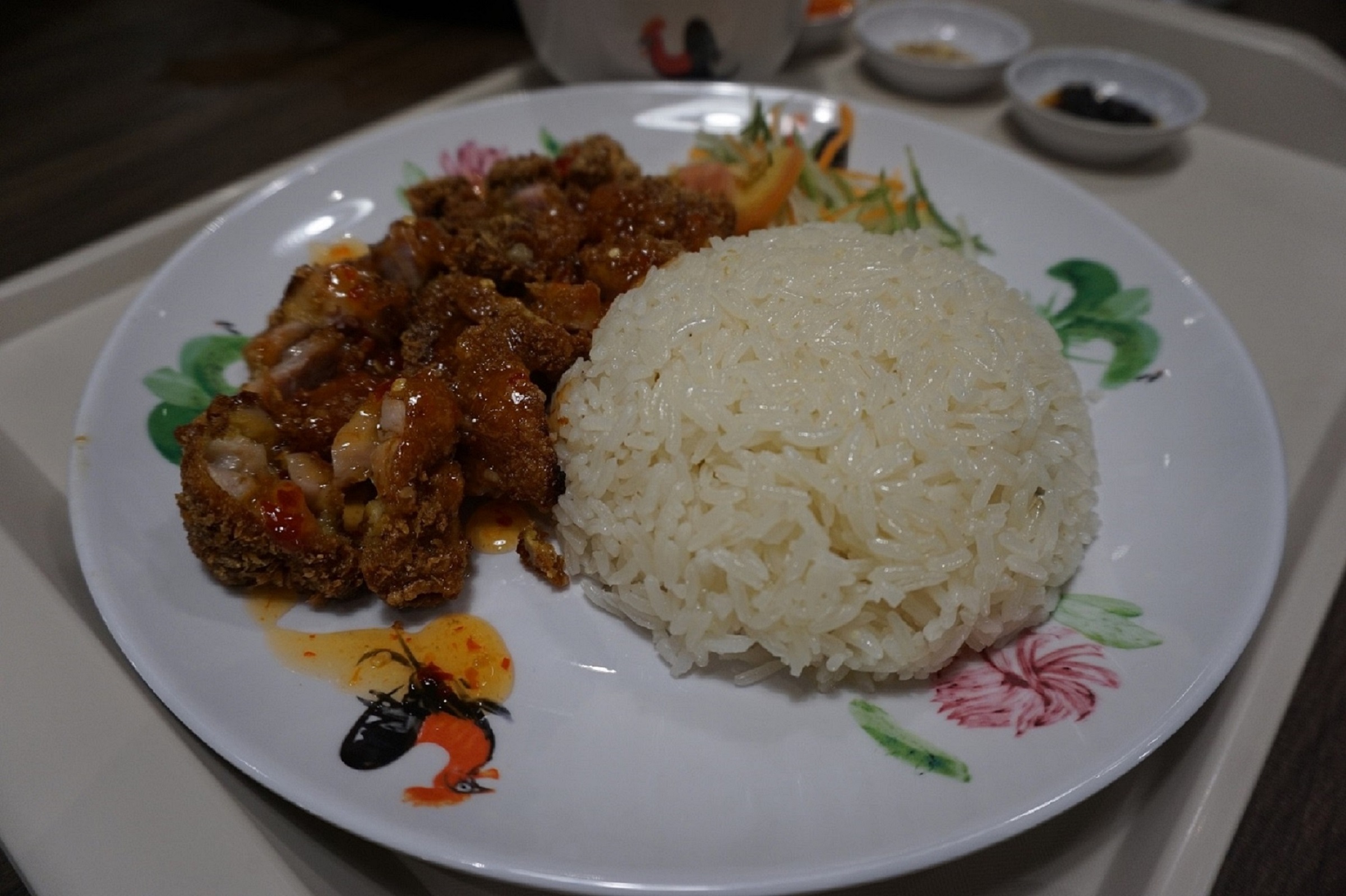 ข้าวมันไก่ทอด ราคา $5.90 มีให้เลือกน้ำจิ้มแบบไทย กับอีกแบบหนึ่ง พอเลือกแบบไทย คนขายบอกว่า welcome to Thailand ข้าวมันหุงได้หอม เม็ดข้าวสวยดีค่ะ แต่กินไปสักหลายคำ ก็เลี่ยนมาก รู้สึกได้ถึงความมันของข้าว