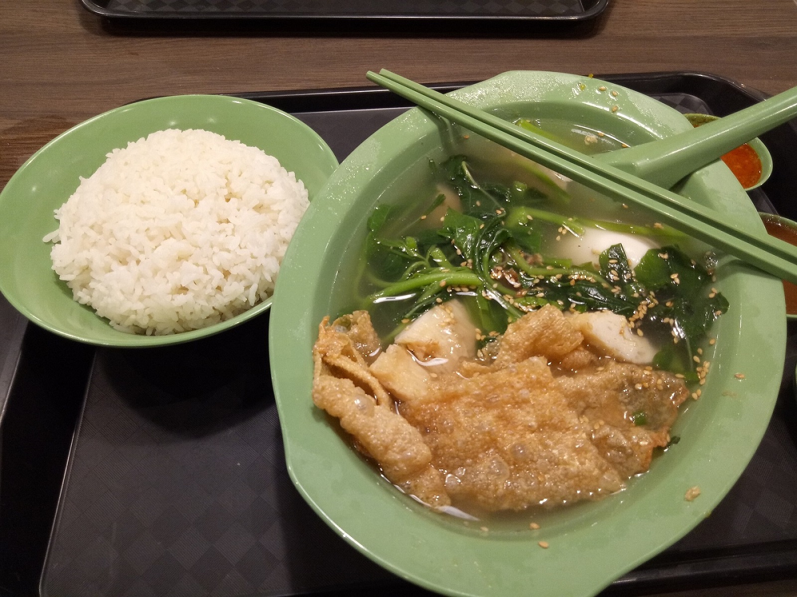 อาหารอีกสองอย่าง ซื้อมาจากร้านข้างๆ ค่ะ ข้าวผัด ราคา $4.50 ซุป ราคา $4.50 รสชาติคล้ายๆ hot & sour soup ที่ร้านจีนในอเมริกา แต่ของสิงคโปร์น้ำจะข้นและสีเข้มกว่าค่ะ