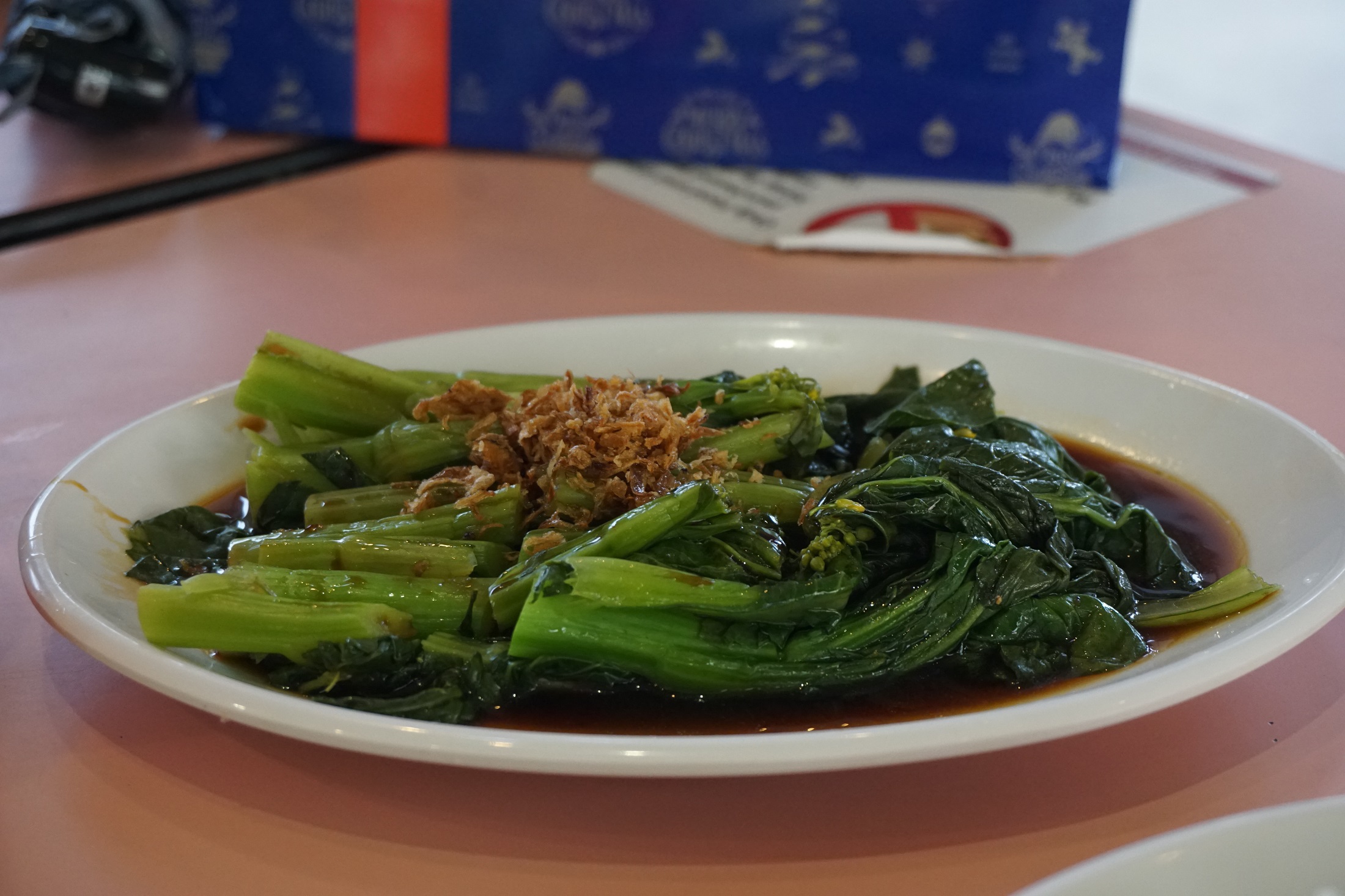 3. ร้าน Hawher Chan ในไช่น่าทาวน์ ถนนสมิธ Smith Street ถึงที่ร้านก่อนที่ร้านเปิดประมาณ 10 นาที (ร้านเปิด 10 โมงเช้าค่ะ) คิวไม่ยาว คนไม่มากเท่าไรค่ะ พอร้านเปิดเดินเข้าไป ไม่นานก็ได้สั่งอาหารค่ะ อาหารที่สั่งมาทั้งหมดประมาณ $21 ค่ะ อาหารรสชาติปกติ ผักลวกราดน้ำซอสอร่อยดีค่ะ
