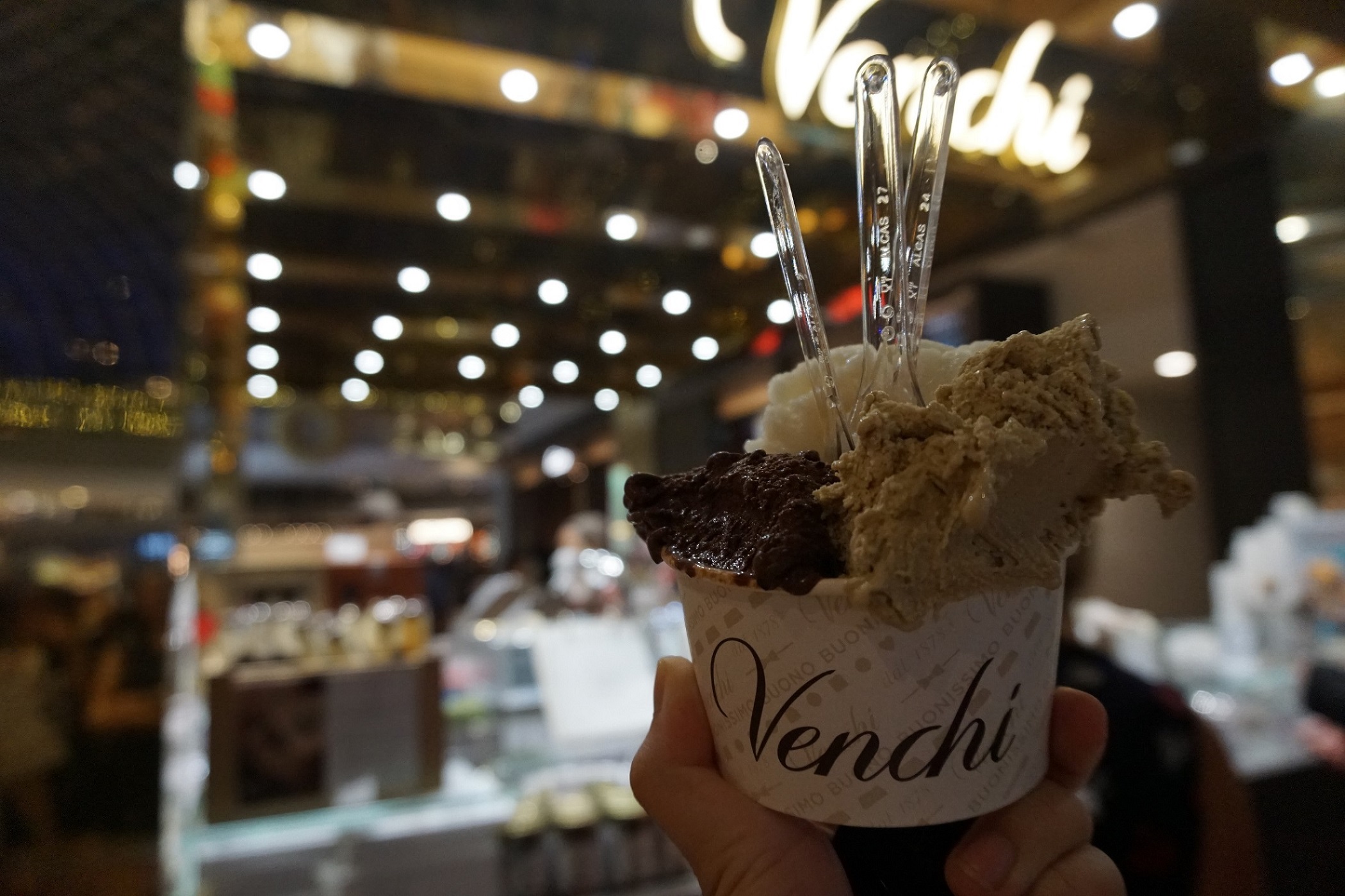 13. ไอติม Venchi ราคา $10.80 ได้สามรส แบ่งกันสามคน อร่อยมากค่ะ เลือกรสชอคโกแลตเข้ม มะนาว และพิตาชิโอ้