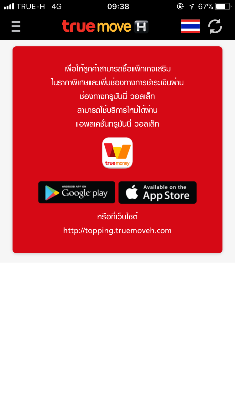 สอบถามหน่อยค่ะ ปกติสมัครแพคเกจเสริมของ truemove h ที่ติด FUP แล้วใช้เน็ต 1Mbps ราคา 150 บาท ในแอพ h pack ได้ แต่ตอนนี้สมัครไม่ได้แล้ว และในแอพ h pack ก็ใช้ไม่ได้ ขึ้นแจ้งให้ไปสมัครใน true wallet แทน