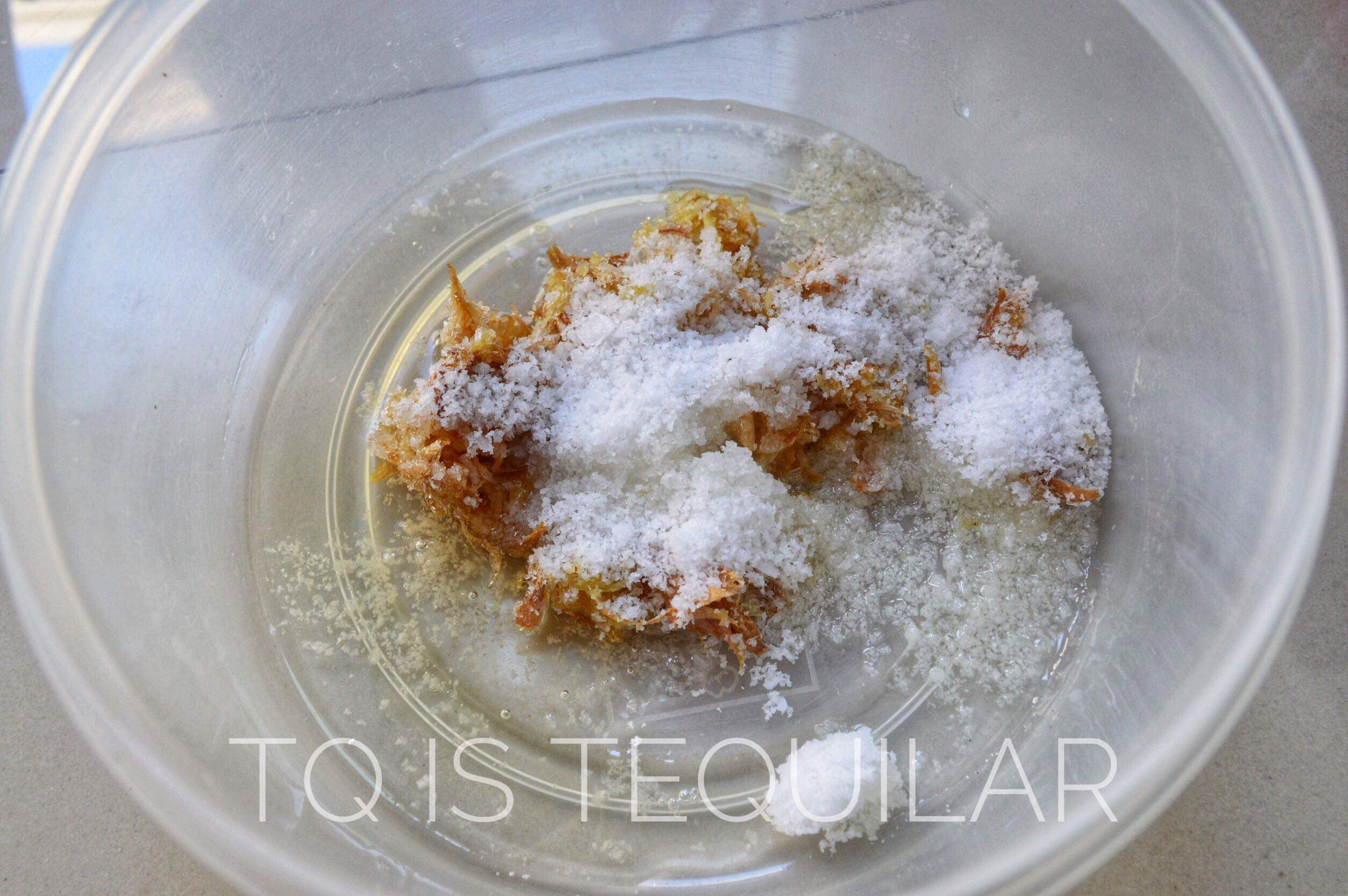 กระเทียม เกลือ น้ำมันพอกเข้าไป