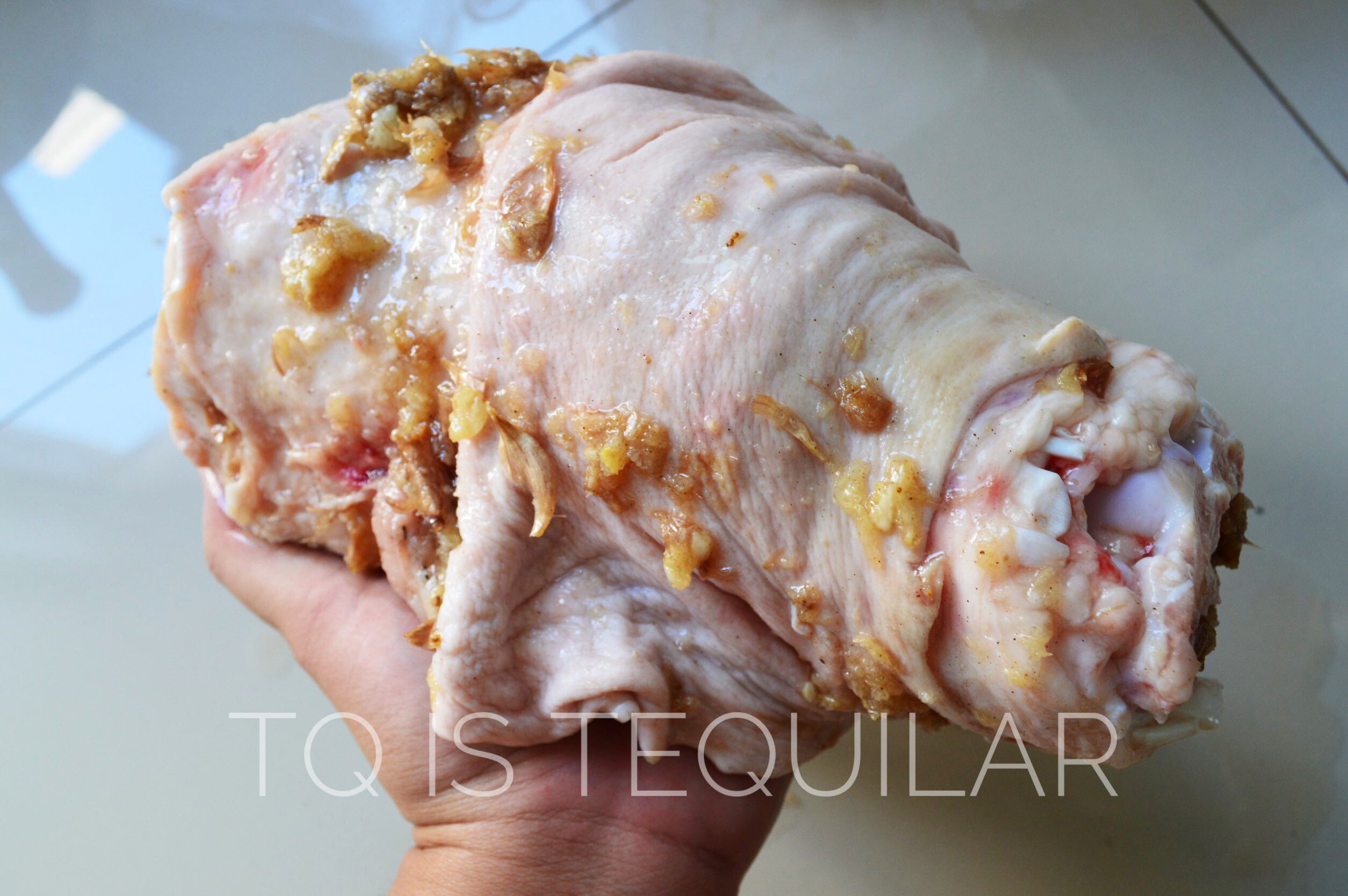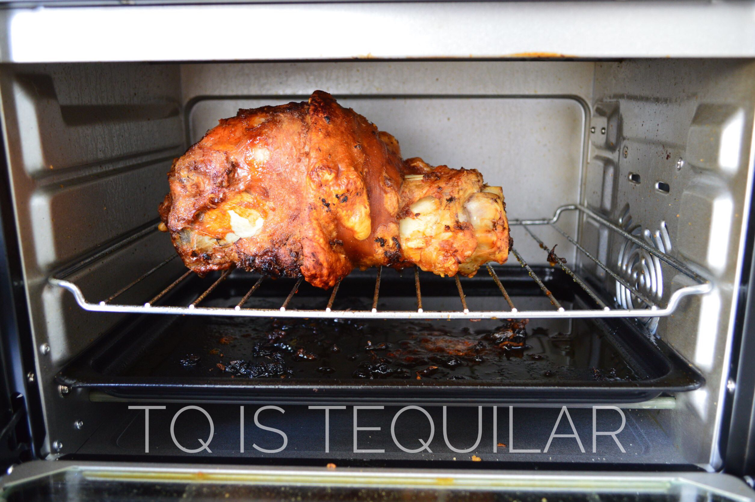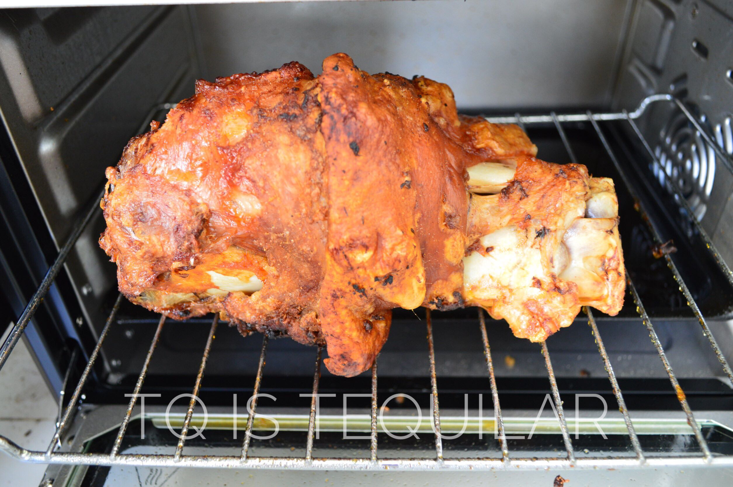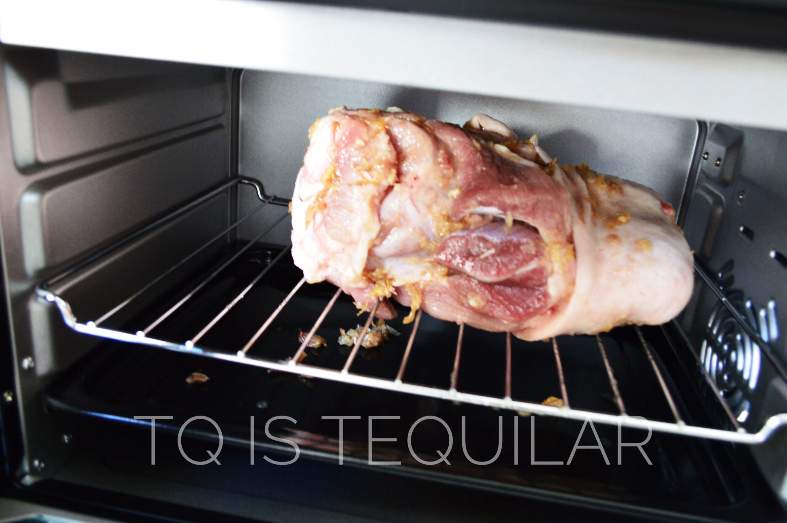 ครบ 90 นาที เปิดดูขาหมู พลิกบ้าง ขยับหน่อย อบต่ออีก 60 นาที ใช้ไฟแรง