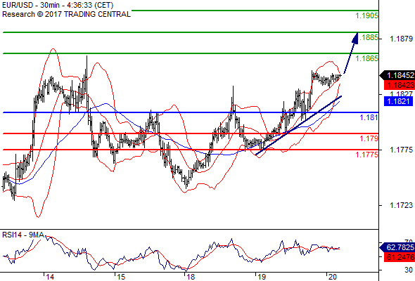 จุดที่ต้องการ: สถานะซื้อสูงกว่า 1.1810 เป้าหมายต่อไปที่ 1.1865 และ 1.1885