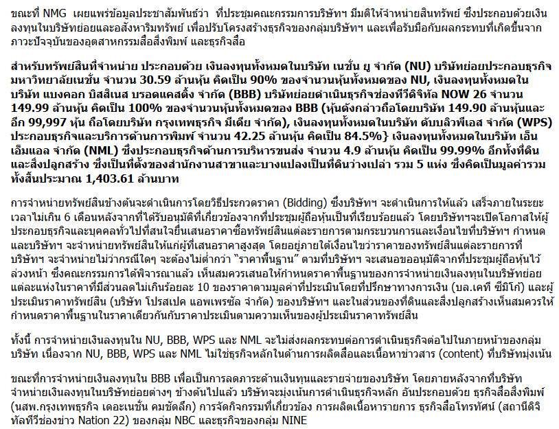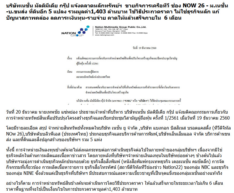 *** เนชั่นประกาศขายสินทรัพย์ 5 รายการ รวมถึงช่อง Now26 ด้วย ***