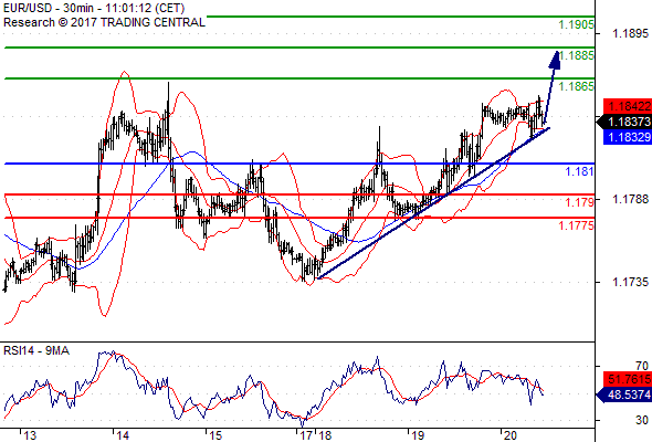 จุดที่ต้องการ: สถานะซื้อสูงกว่า 1.1810 เป้าหมายต่อไปที่ 1.1865 และ 1.1885