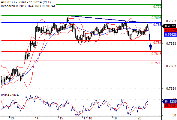 ทางเลือกการลงทุน: สูงกว่า 0.7680 คาดหมายว่ามีแนวโน้มขาขึ้นต่อเนื่องที่ 0.7695 และ 0.7720 เป็นเป้าหมาย
