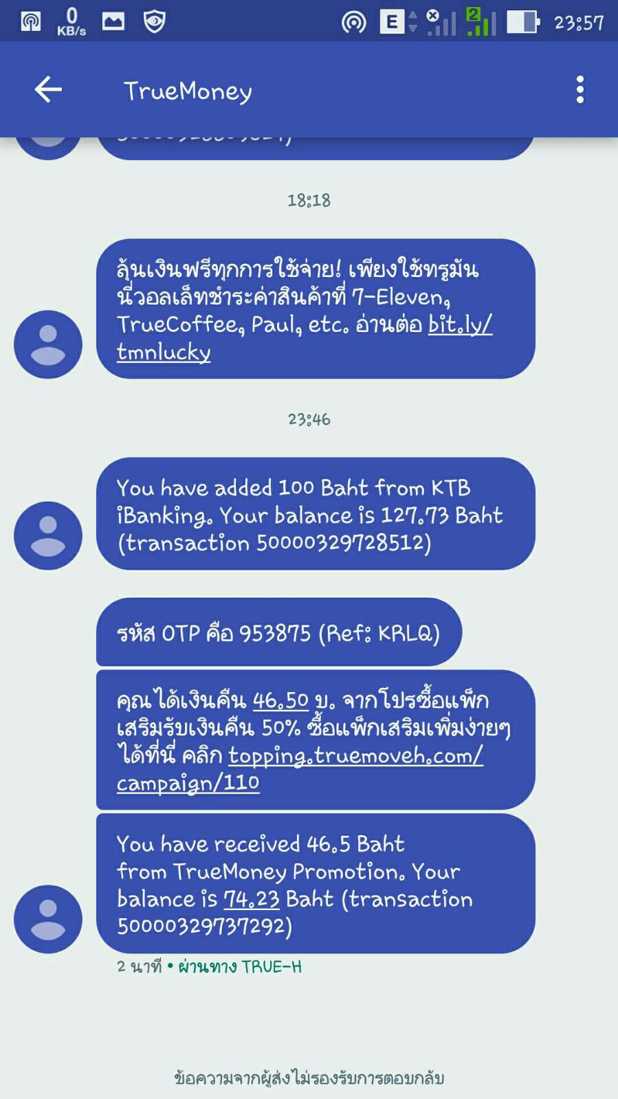 อีกเรื่องหนึ่งคือสมัครผ่าน True money wallet ได้รับเงินคืน 50% สำหรับโปรฯรายสัปดาห์ แต่ทำไมได้คืนแค่ 46.5 บาท จาก 100 บาท (ต้องเป็น 50 บาทไม่ใช่เหรอครับ)