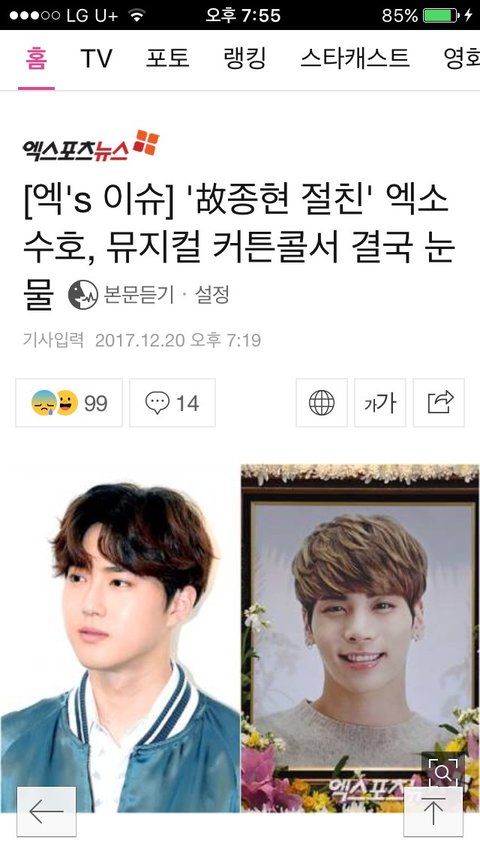 [ความเห็นชาวเน็ต] ซูโฮ EXO ไม่สามารถกลั้นน้ำตาไว้ได้ขณะแสดงบนเวทีมิวสิคัล #RIPJonghyun