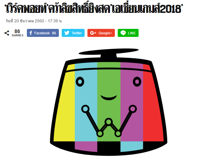 Work Point ได้ลิขสิทธิ์ถ่ายทอดสด เอเชียนเกมส์ 2018 ครั้งที่ 18