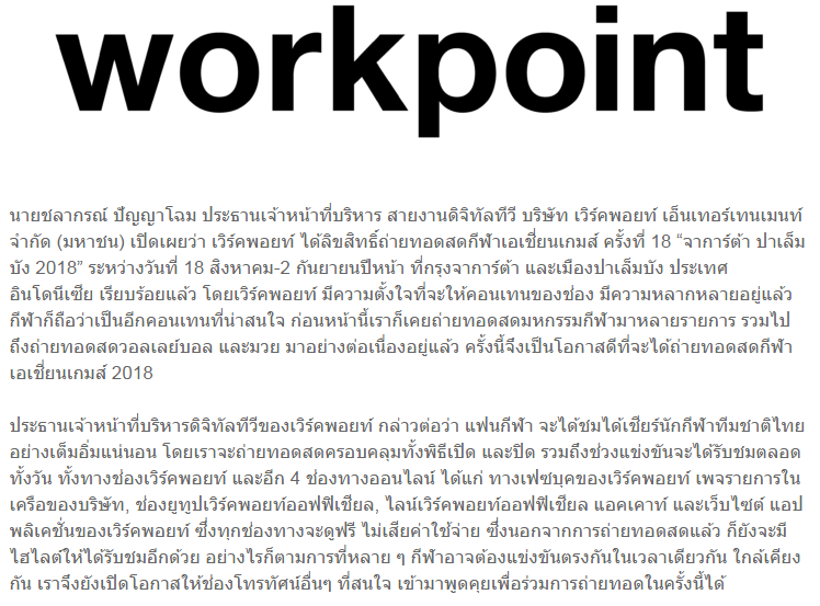 เวิร์คพอยท์ คว้าลิขสิทธิ์ ถ่ายทอดสด เอเชี่ยนเกมส์ 2018
