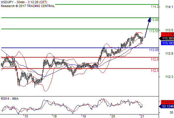 จุดที่ต้องการ: สถานะซื้อสูงกว่า 113.05 เป้าหมายต่อไปที่ 113.55 และ 113.85