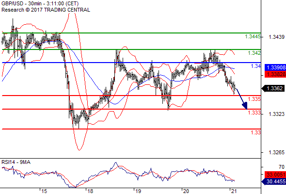 ความเห็นในเชิงเทคนิค: การทะลุต่ำกว่า 1.3350 จะทำให้เกิดร่วงลงไปที่ 1.3330