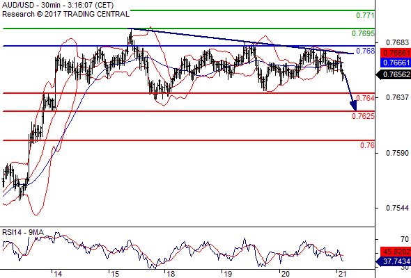 ทางเลือกการลงทุน: สูงกว่า 0.7680 คาดหมายว่ามีแนวโน้มขาขึ้นต่อเนื่องที่ 0.7695 และ 0.7710 เป็นเป้าหมาย