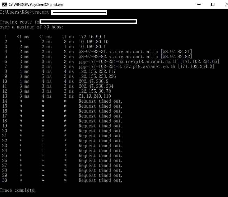 ผมลอง tracing rount ไปติดที่ 61.19.240.110 ตามภาพ