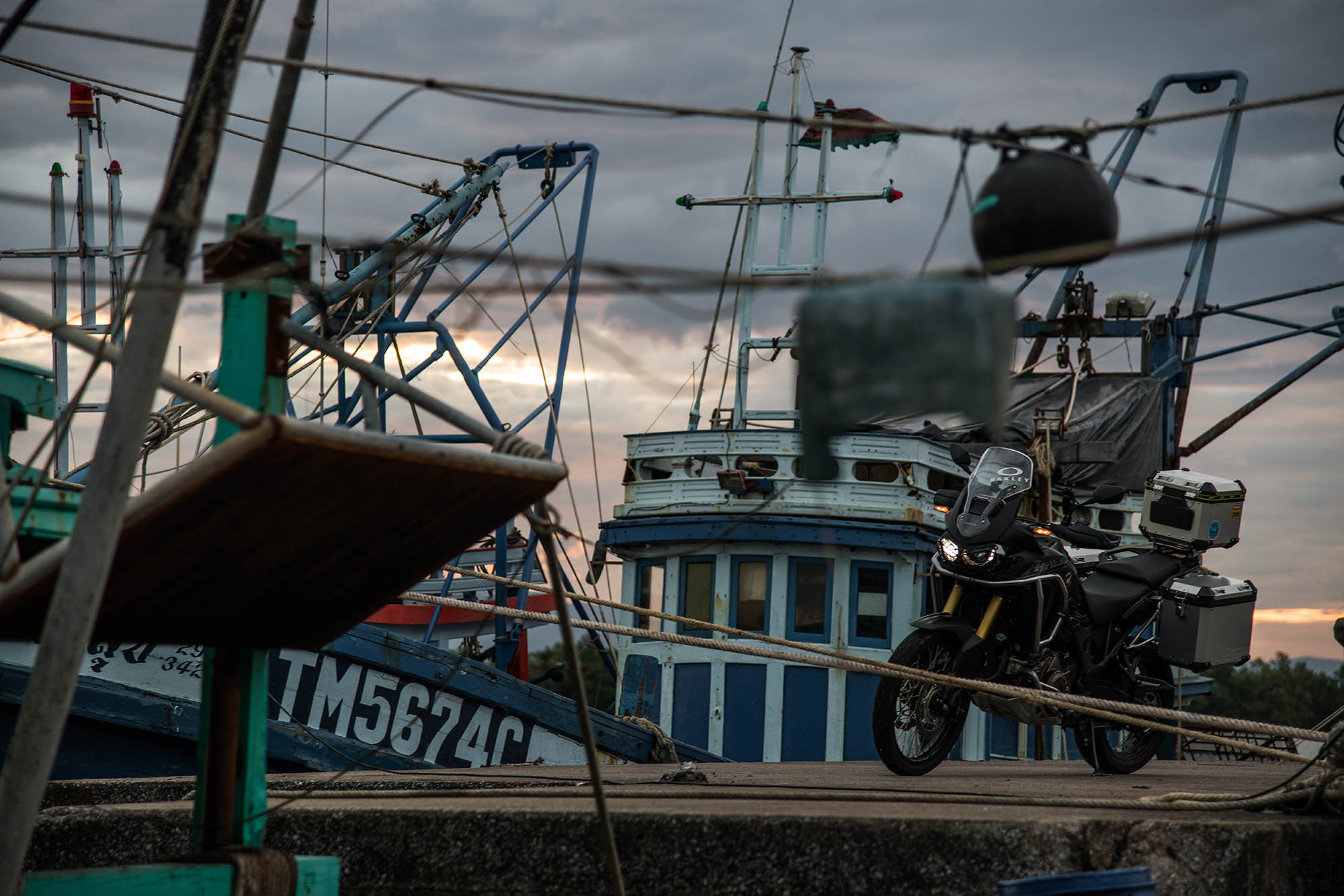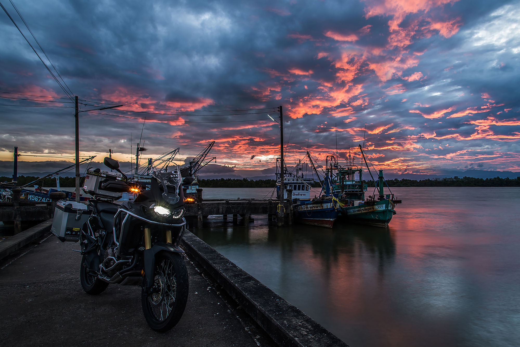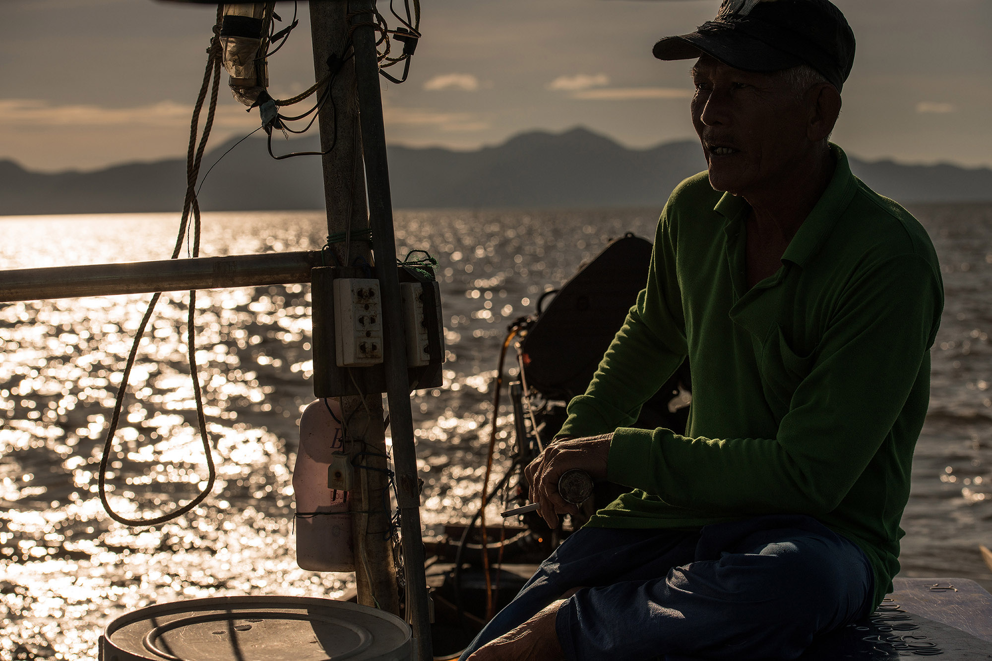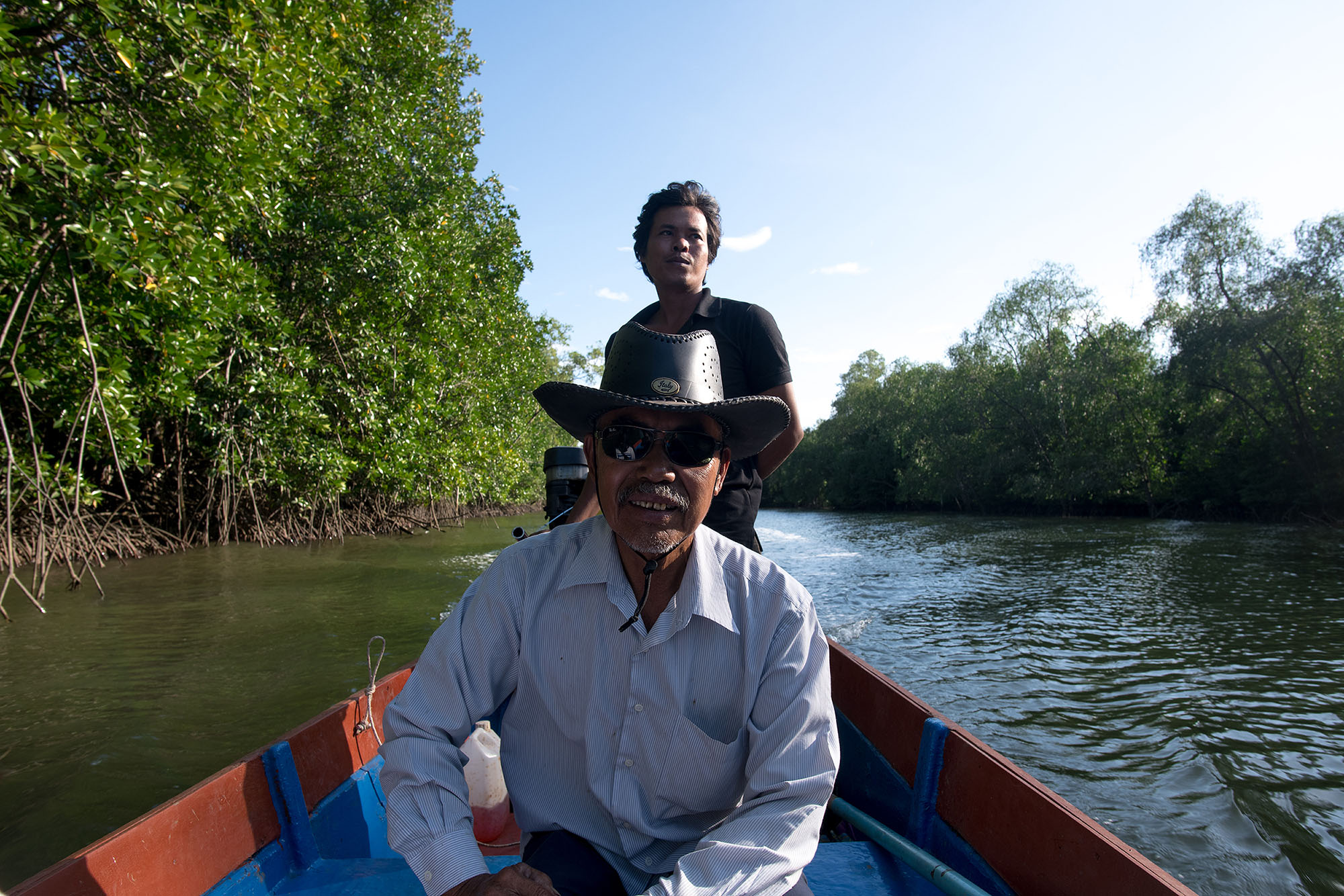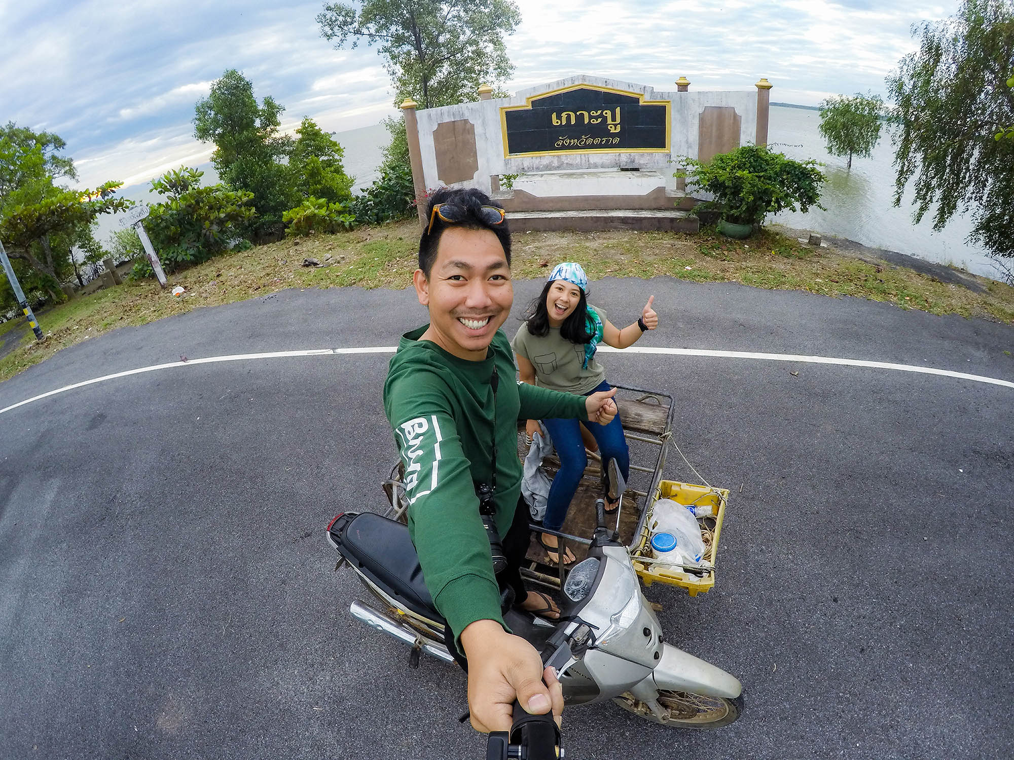 พักจนหายเหนื่อยก็ต้องจอดมอไซค์ไว้ที่ฝั่ง และโดดลงเรือมากับลุงณรงค์