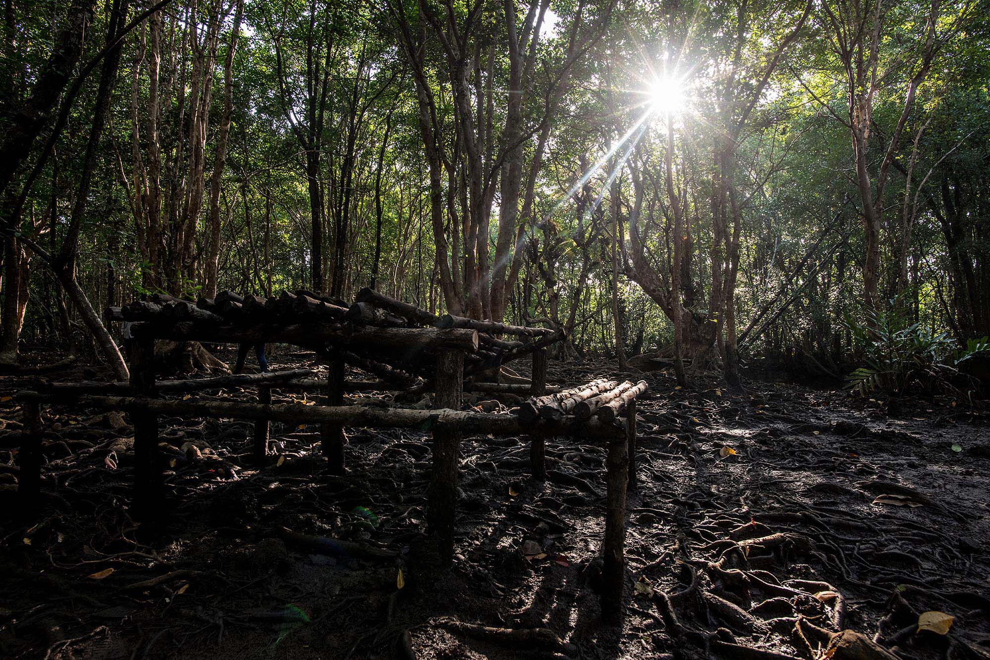 นั่งเรือมาตามล่องน้ำป่าโกงกางได้ประมาณสิบกว่านาทีก็มาถึง ลานตะบูน หรือ พื้นที่ป่าดึกดำบรรพ์