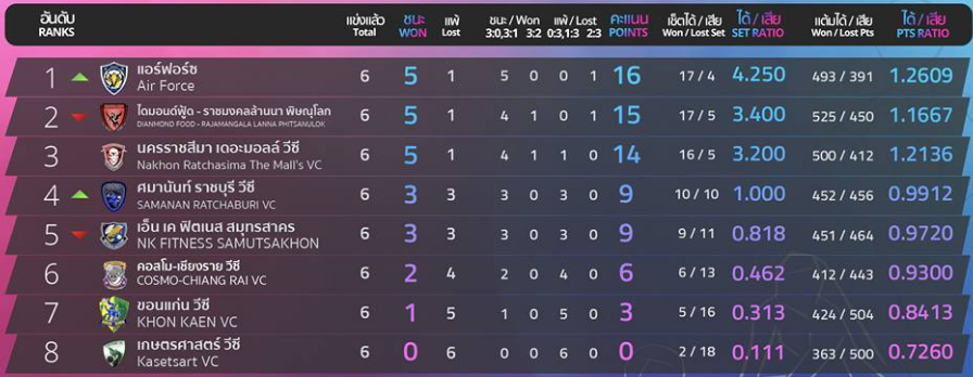ตารางคะแนน วอลเล่ย์บอล ไทยลีก ประจำวันที่ 16 ถึง 17 ธันวาคม 2560