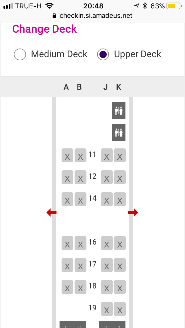 ซึ่งไฟลท์นี้ผมไปจบที่12Aครับ ระบบจัดมาให้เลย ซึ่งพอใจมาก พอลองกดดูผังที่นั่ง ก็มีที่นั่งให้กดเปลี่ยนได้อีกพอสมควร ทั้งๆที่ตอนนั้นก่อนเวลาเครื่องออกเเค่8ชั่วโมง