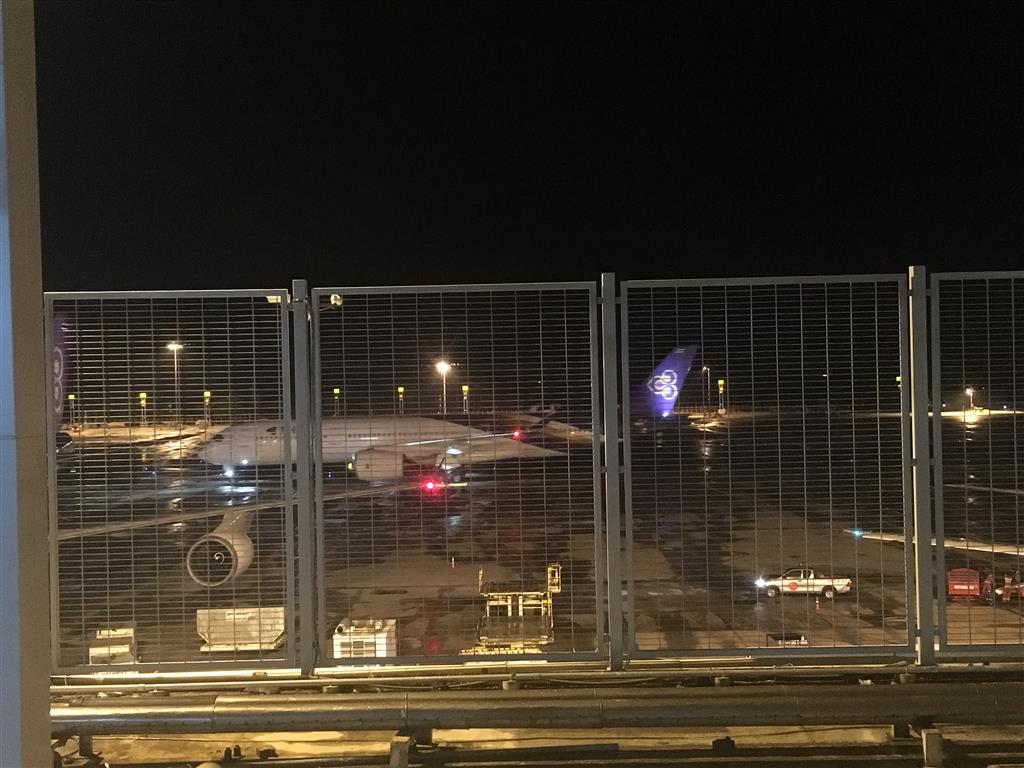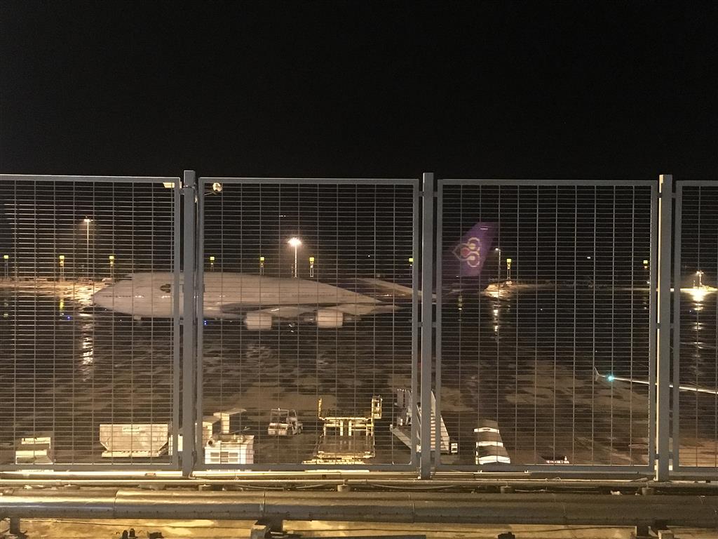 ผมเลือกโต๊ะริมกระจกครับ มันมีดีตรงนี้ ถึงจะมีตะเเกรงบังก็เหอะ มองออกไปเห็น A330-300 ของป้านั่นเเหละ HS-TEN คุณสุชาดา เตรียมตัวกลับสุวรรณภูมิ ในไฟลท์ TG218