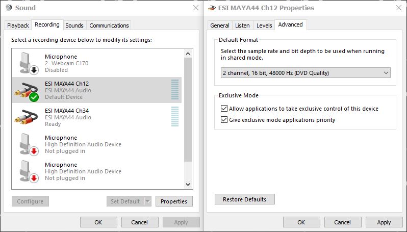 sound card เป็นของ esi maya44 รูเสียบเป็นรูใหญ่ทั้งหมด ผมใช้หัวแปลง ลำโพงรูเล็กไปรูใหญ่ เสียบกับไมค์หัวเล็ก เป็นไมค์คอมพิวเตอร์ธรรมดา เสียบเข้าช่อง 1/2 และ 3/4 ทั้งสองช่อง ไม่มีช่องไหนมีเสียงออกเลย ทั้งกด mic +48v แล้วก็ยังไม่มีเสียงออกมาเลยครับ อยากทราบว่าต้องทำอย่างไร และไมคอมธรรมดาใช้กับซาวกราดแบบนี้ได้หรือไม่ครับ
